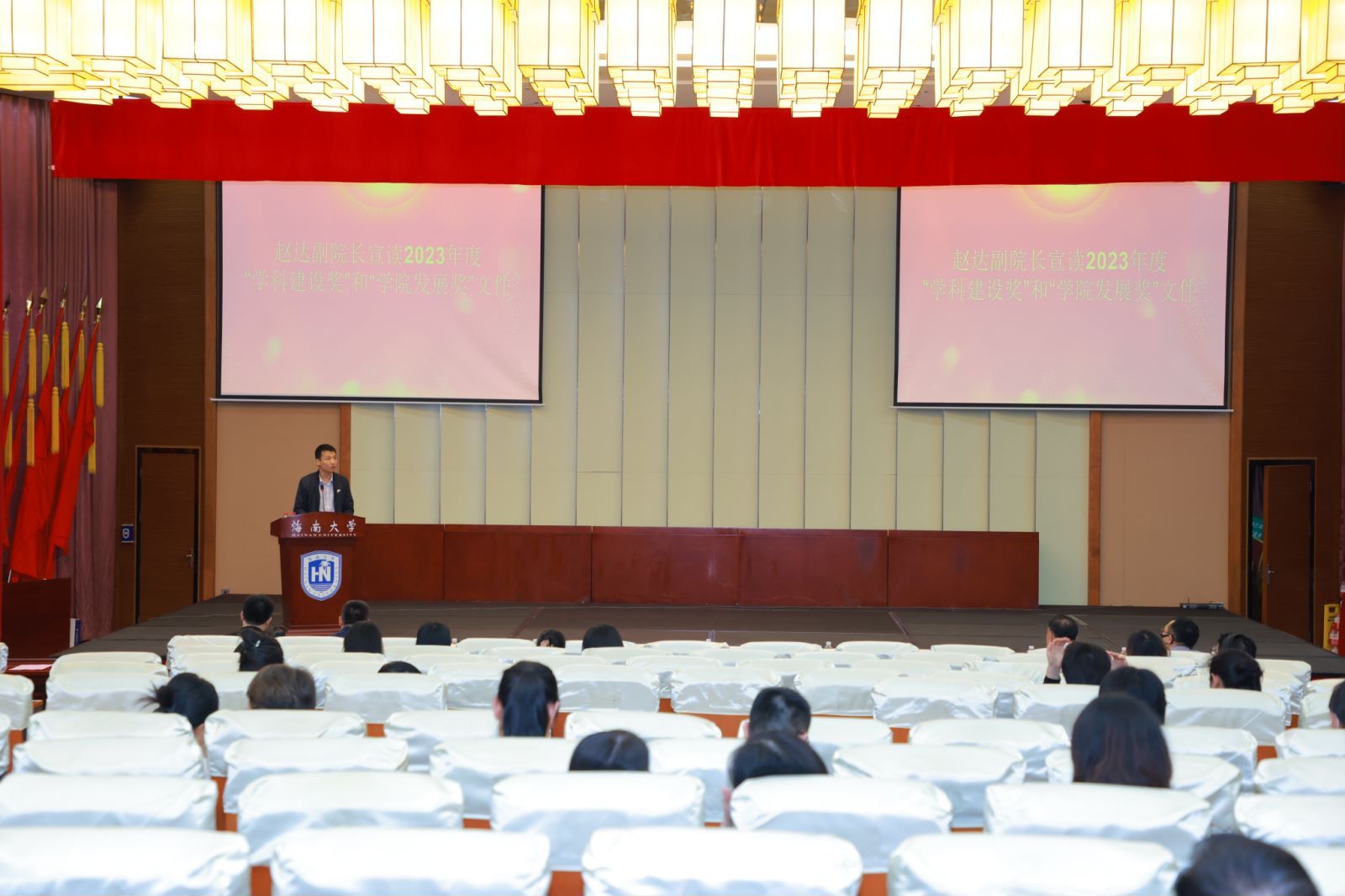在社科楼二楼报告厅召开2023年度考核工作会议暨年度工作总结大会。海南大学考核工作小组、学院领导班子出席会议,全体教职工参加会议。