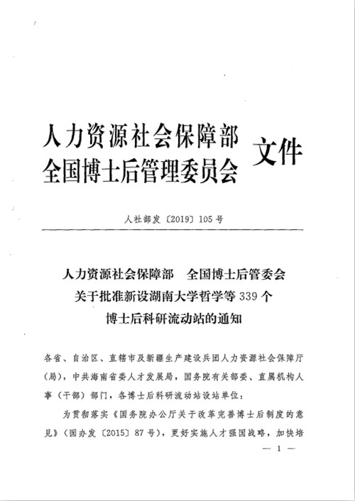 日前,人力资源和社会保障部、全国博士后管理委员会日前发布了《关于批准新设湖南大学哲学等339个博士后科研流动站的通知》(人社部发〔2019〕105号),批准新设海南大学工商管理一级学科博士后科研流动站。本次申报工作启动以来,学院领导高度重视,各系各办积极参与,认真准备申报材料,群策群力,最终成功申报博士后科研流动站。
