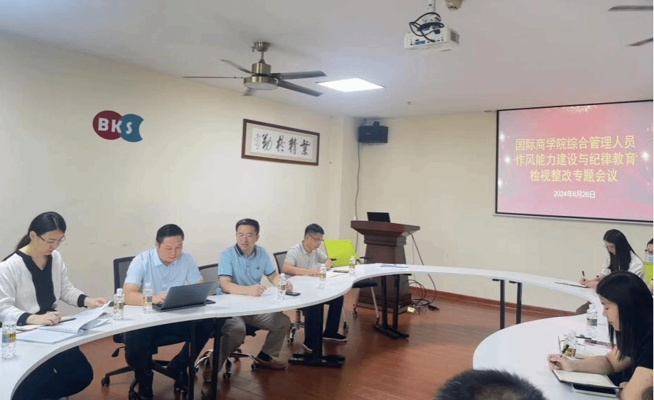 在社科楼B319召开综合管理人员纪律教育检视整改与作风能力建设专题会议。副院长付景涛、童泽林,学院党委副书记、纪委书记(兼)王静出席了此次会议,学院全体综合管理人员参加会议。