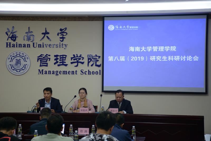 为了促进学科建设工作、提升研究生培养质量、营造良好学术氛围,海南大学管理学院第八届(2019)研究生科研讨论会于2019年12月31日在社科楼B112举行。出席本次会议的领导有研究生处副处长郑育声,管理学院邢谷川书记、许能锐副院长、赵达副院长、付景涛副院长、分管学生工作的副处级辅导员符涛,管理学院部分研究生导师、部分博硕士研究生参会。会议开幕式由赵达副院长主持。