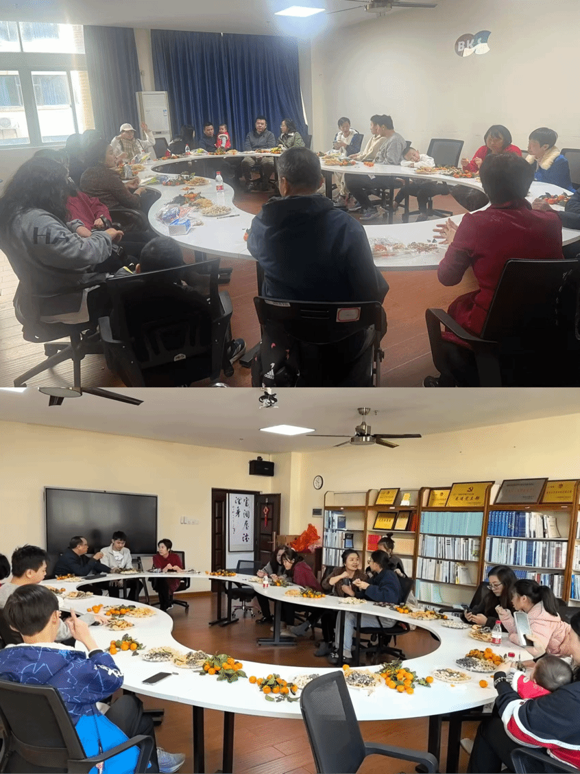 三楼办公室里外热闹非凡,学院工会在此举办了一场别开生面、热闹非凡的团拜活动。此次活动旨在弘扬中华传统文化,增进教职工之间的情感交流,营造欢乐祥和的节日氛围,为新的一年注入满满的正能量。