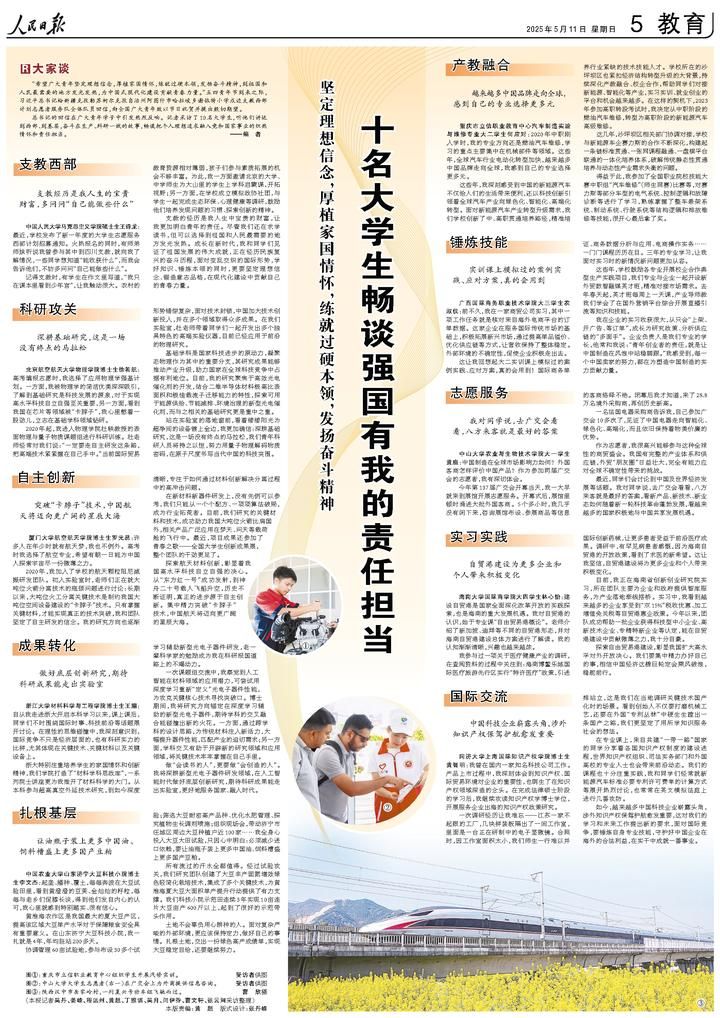 2025年5月11日,人民日报刊发了《强国有我责任担当,十名大学生这样说》的专题报道,bet365亚洲官网