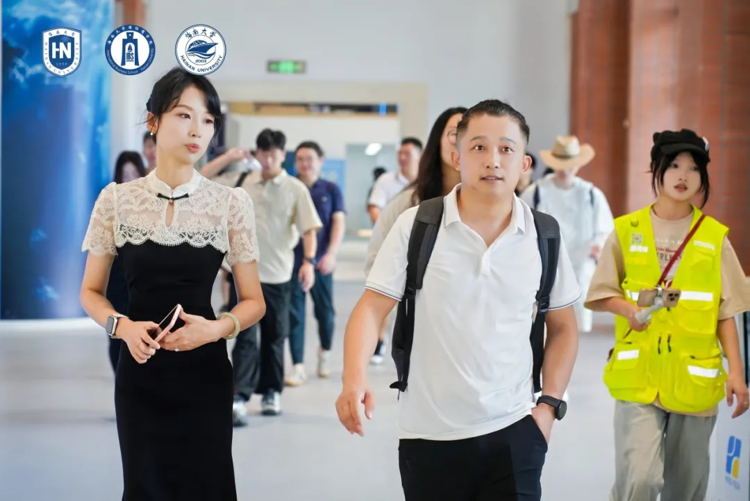 王雁飞首先对学校的历史以及近年来的快速发展进行了介绍,并带领队伍参观了协同创新中心应用场景集成展示厅,使来宾得以领略海南大学最前沿的科研成果。