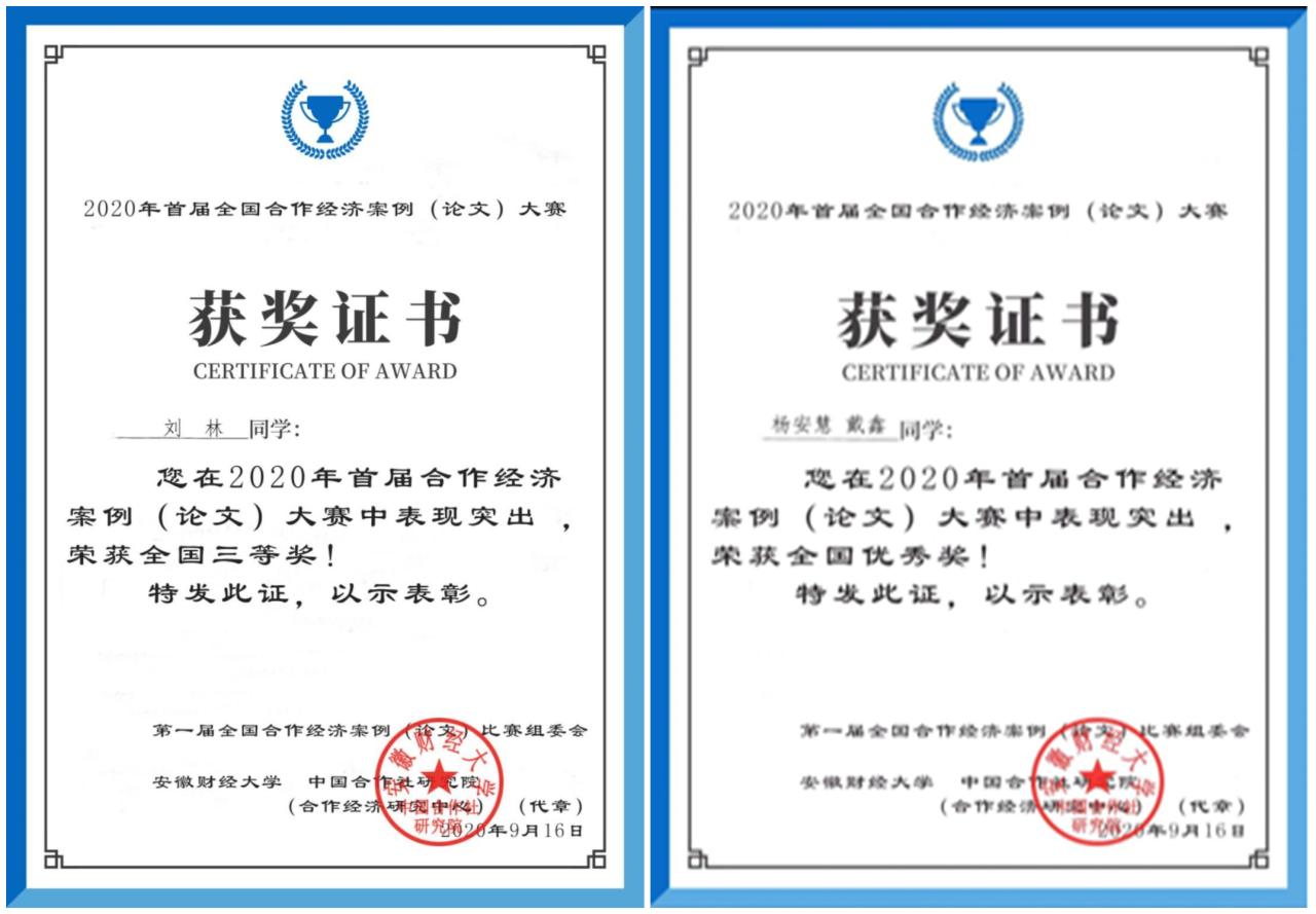 许海平教授及研究生和本科生投稿了6篇论文:《金融认知水平与农村居民家庭收入》《金融素养对农村居民家庭负债行为的影响研究》《信任、社会资本与农村居民幸福感》《社会资本、健康与农户收入》《电商对农产品销售收入的影响研究》《智能手机对我国农村居民家庭消费的影响》,其中前两篇文章参加2020年首届全国合作经济案例(论文)大赛,荣获全国三等奖1项和全国优秀奖1项。