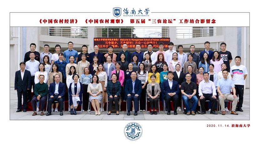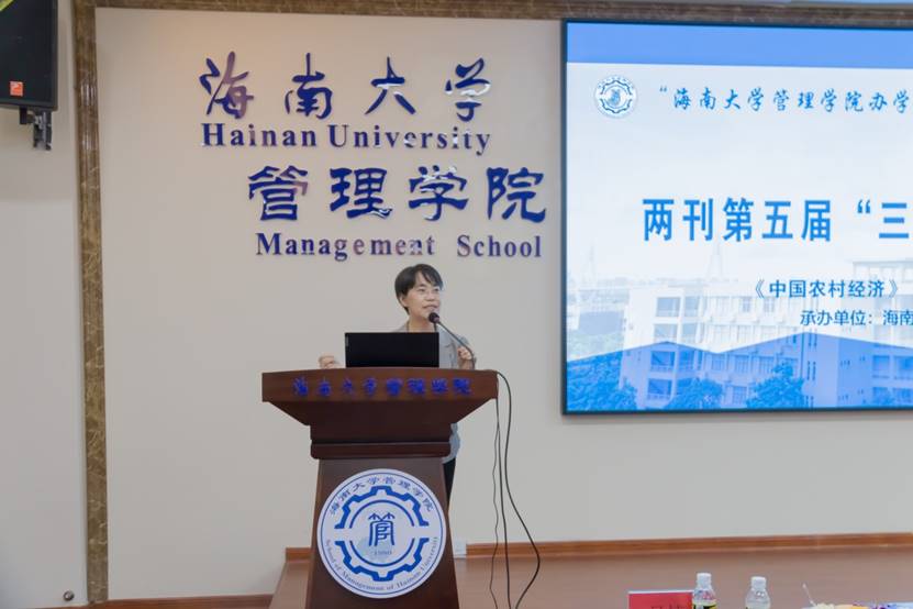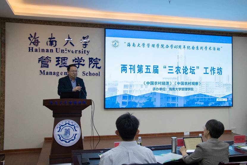 2020年11月14日上午,第五届“三农论坛”工作坊在海南大学社科楼B112举行。此次论坛由中国社会科学院农村发展研究所《中国农村经济》《中国农村观察》(简称“两刊”)编辑部发起并主办,海南大学管理学院承办。西北农林科技大学经管学院院长赵敏娟教授,中国人民大学农业与农村发展学院党委书记吕捷副教授,两刊编辑部胡祎助理研究员作为评审专家参加论坛。海南大学副校长傅国华教授和两刊总编辑、副社长兼编辑部主任潘劲研究员分别致辞。会议由学院张德生副院长主持。
