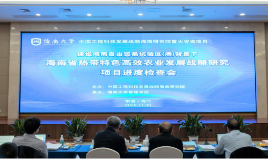 11月30日,由中国工程科技发展战略海南研究院主办“建设海南自由贸易试验区(港)背景下海南省热带特色高效农业发展战略研究”项目进度检查会在海南大学召开。中国工程院院士陈剑平和陈温福,韩鲁佳和李洪文等来自宁波大学、沈阳农业大学、中国农业大学、中国农业机械化科学研究院、农业农村部南京农业机械化研究所、华中农业大学、华南农业大学等7个单位的院士和特邀专家13人应邀出席会议。中国科学院院士、海南大学校长骆清铭,副校长傅国华教授,中国工程院三局原副局长王元晶,海南省农业农村厅规划处处长余海清,校长办公室副主任胡景卫,科技处副处长张喜瑞应邀参加会议。会议由项目牵头人中国工程院院士罗锡文教授主持。