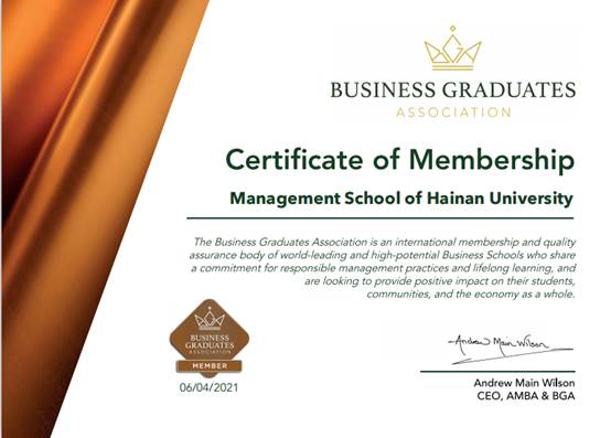 高质量持续发展,加强一流学科建设,促进国际交流和合作研究,提升国际化水平和影响力。学院将充分利用国际组织和会员网络提供的平台、资源和优势,紧跟国际商科教育发展前沿领域,进一步对标商科国际人才培养质量和标准,加快提升专业化、国际化水平,争创一流商学院,为海南自贸港建设贡献管理智慧。