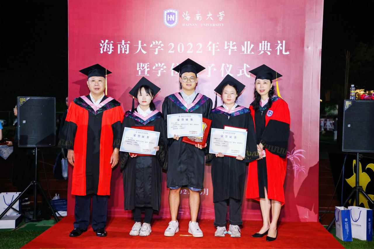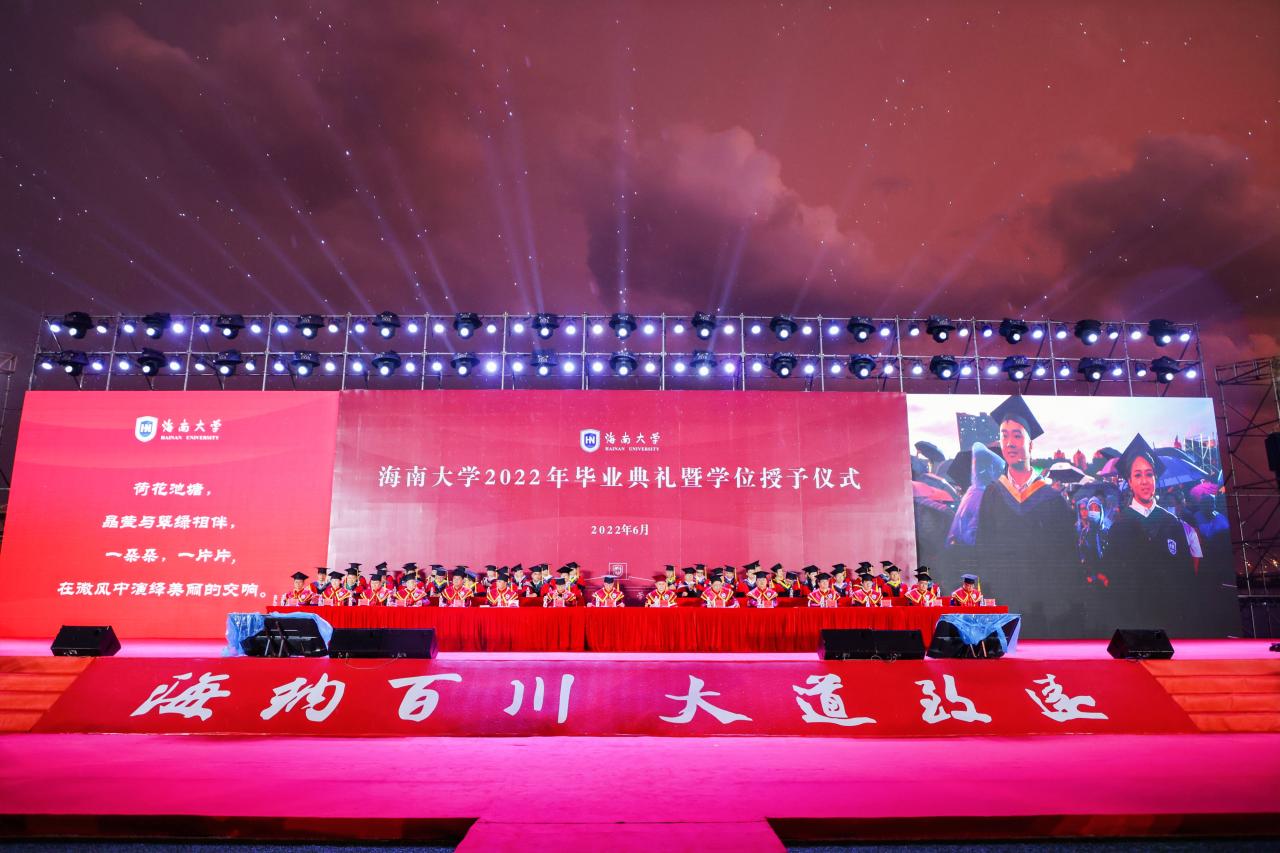 2022年6月19日晚上,海南大学在第二田径运动场举行2022年毕业典礼暨学位授予仪式。仪式第三阶段,管理学院在分会场举行2022届毕业生学位授予仪式暨2022年“盘石·优秀学子深造奖学金”颁奖仪式。