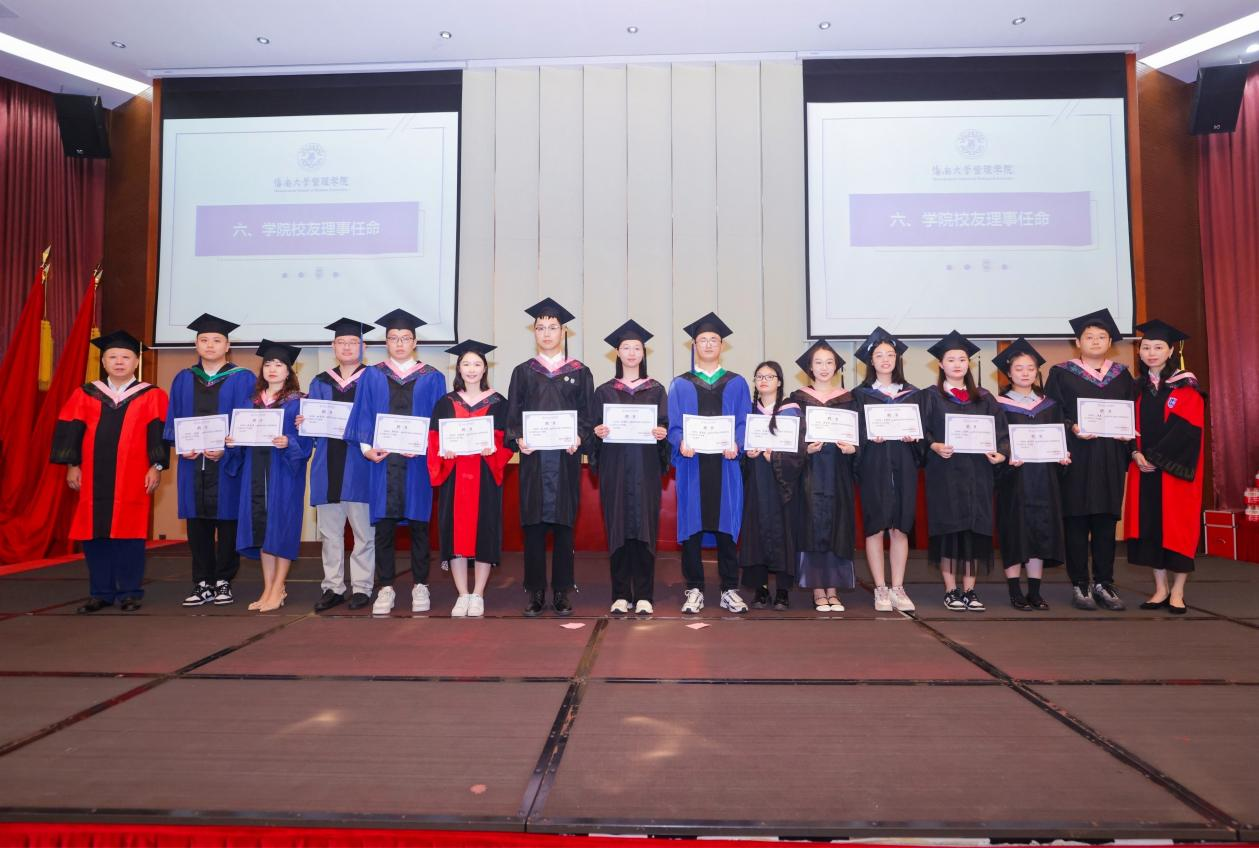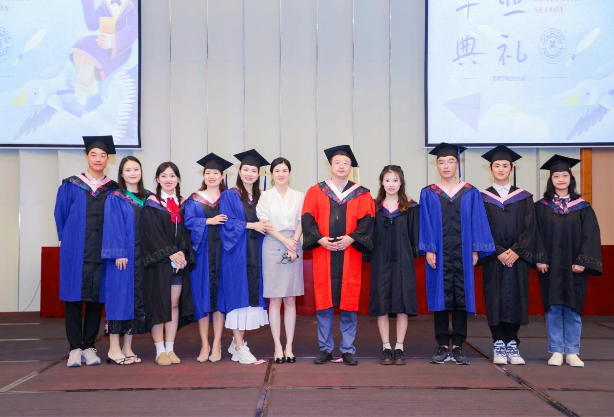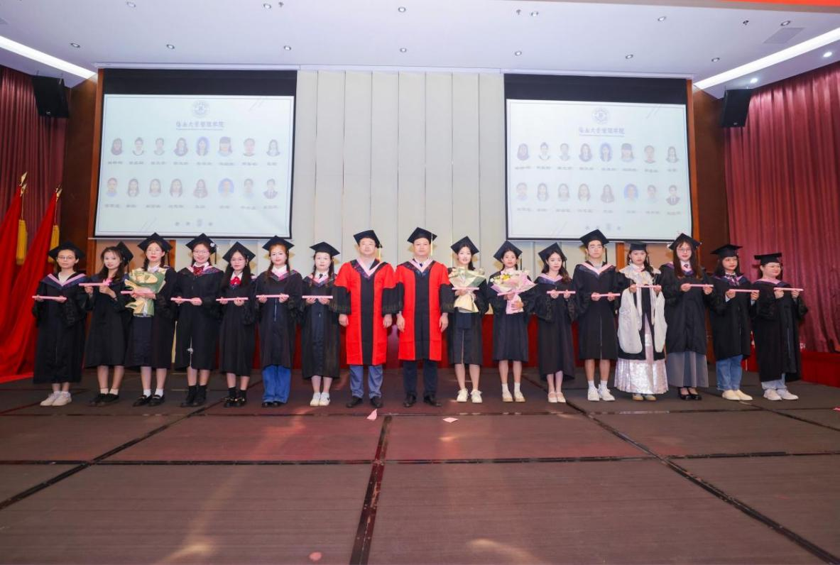 管理学院院长唐宁玉,院党委书记邢谷川,副院长许能锐、付景涛、赵达、童泽林出席仪式。学院教师代表、毕业生代表等共三百余人参加。本次仪式由赵达主持。
