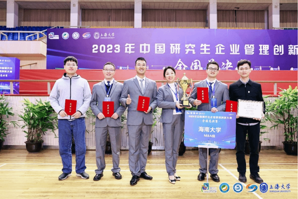 2023年11月25日,“2023年中国研究生企业管理创新”大赛全国总决赛在上海大学顺利落下帷幕。经过激烈角逐,海南大学MBA代表队“自贸先锋队”(队员:江嘉佩、王箭射、马春林、黄鹤林)在陈一华、肖皓文两位老师的指导下荣获“2023年中国研究生企业管理创新大赛一等奖”。同时,海南大学与北京大学、浙江大学、中国人民大学等二十所高校荣获“优秀组织奖”。