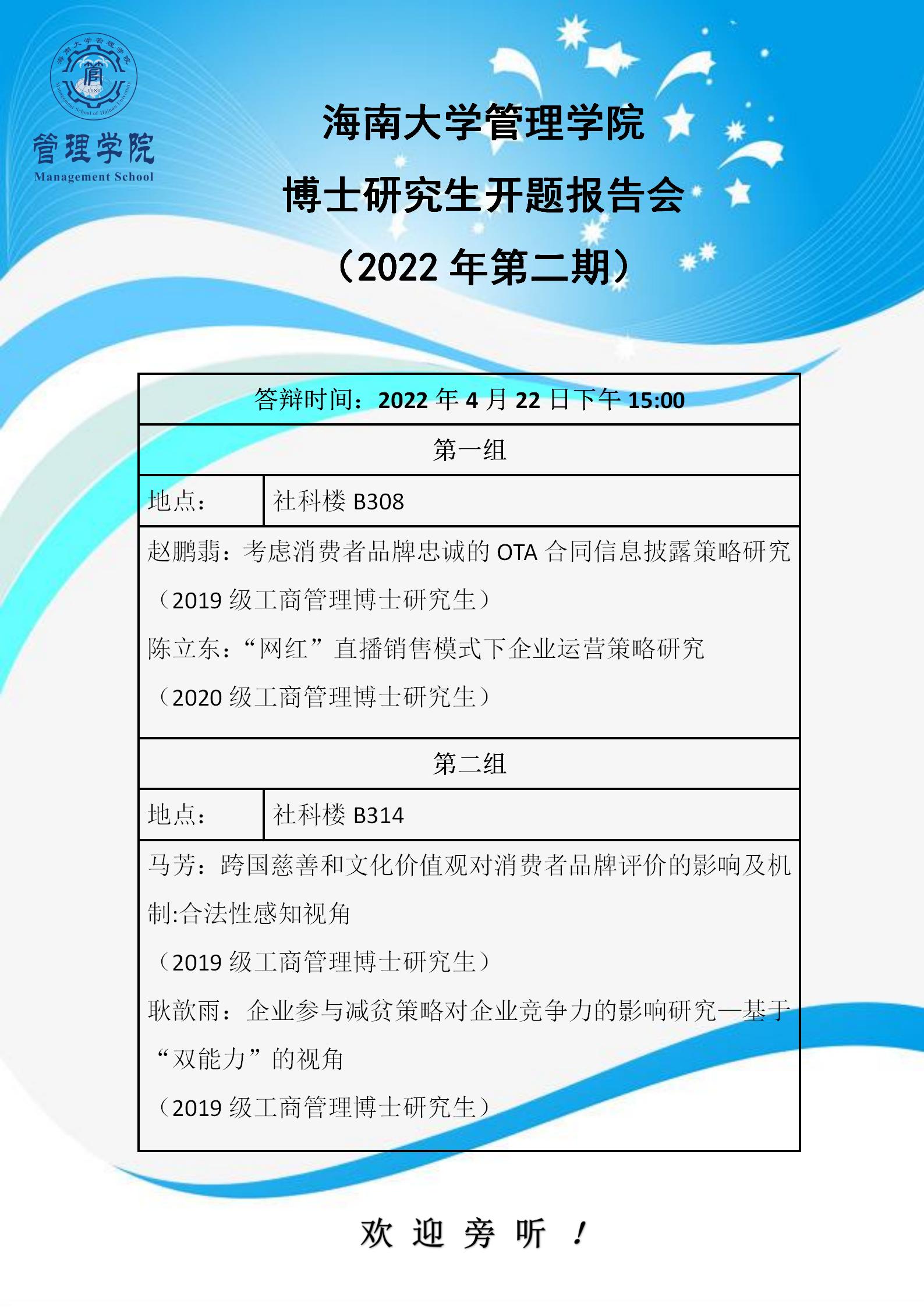 海南大学管理学院博士研究生开题报告会(2022年第二期)