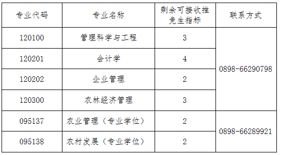 海南大学管理学院2023年接收推荐免试攻读硕士学位研究生工作已接近完成。目前尚有少量可接收推免生指标,具体专业及人数如下。