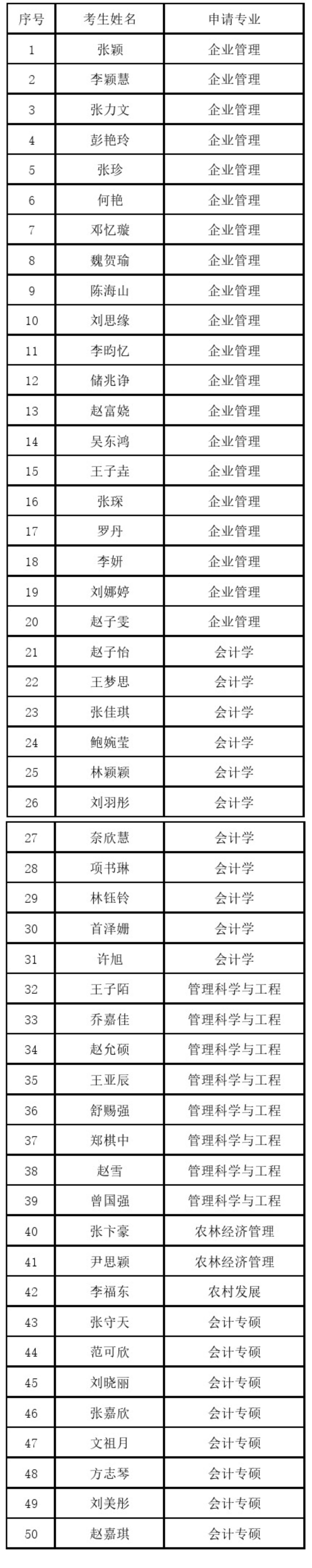 海南大学管理学院2023年全国优秀大学生夏令营入营名单
