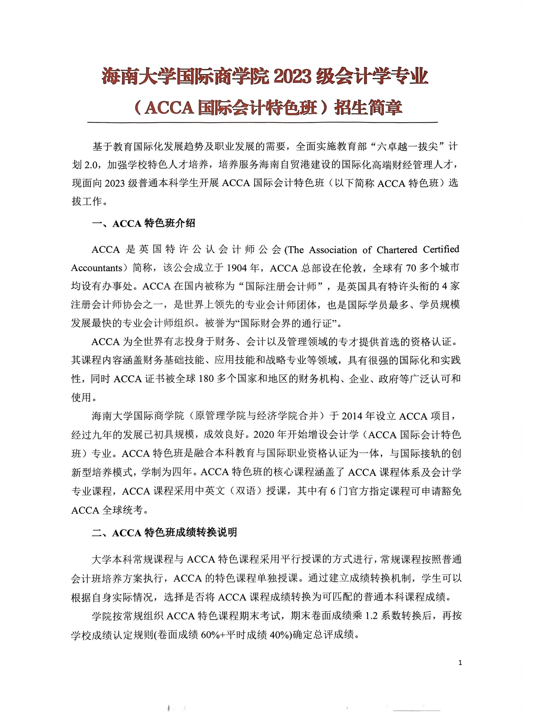 bet365亚洲官网 2023级会计学专业(ACCA国际会计特色班)招生简章