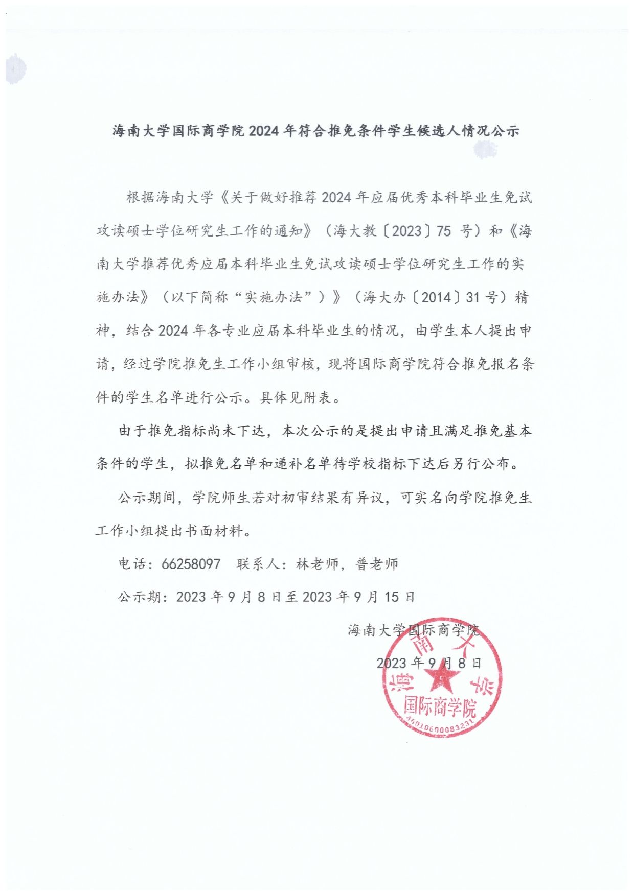 bet365亚洲官网 2024年符合推免条件学生候选人情况公示