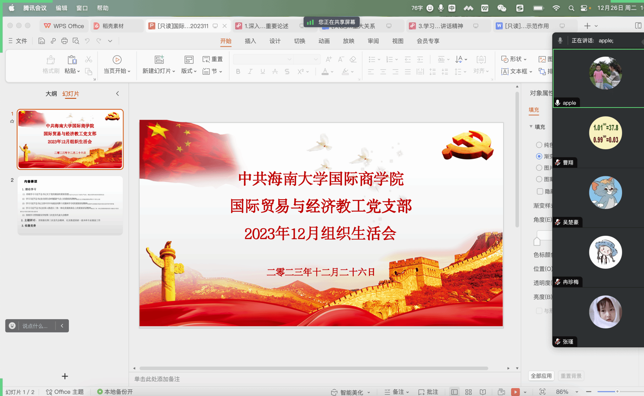 2023年12月,365bet官网 各党支部分别召开了学习会,持续深入学习贯彻党的二十大精神。学院班子成员带头参加所在党支部组织生活会并列席所联系党支部组织生活会,就中国共产党海南大学第三次党员代表大会等内容进行领学。