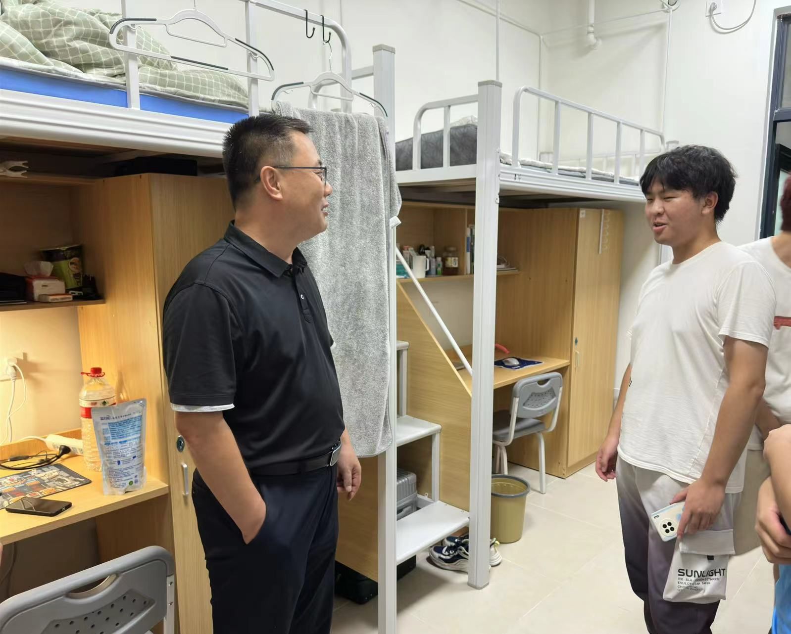 为确保学生流转工作安全有序开展,8月22日,王静带队前往观澜湖校区看望学院2023级本科生,走访学生宿舍,切实了解学生的需求,暖心提醒流转过程中的注意事项。