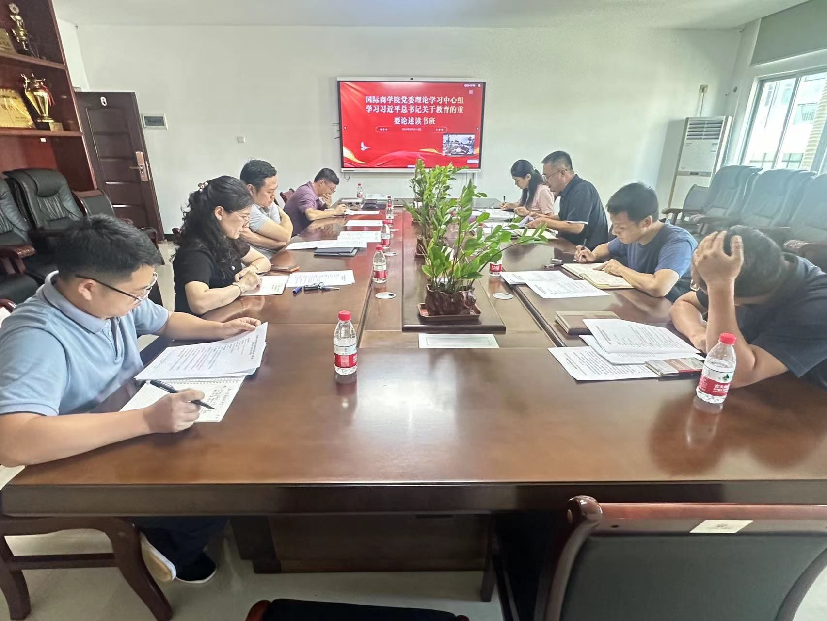 党委理论学习中心组2024年第7次学习会暨学习习近平总书记关于教育的重要论述读书班在社科楼B314会议室召开。院党委书记南国芳主持会议,学院党委委员参加会议。