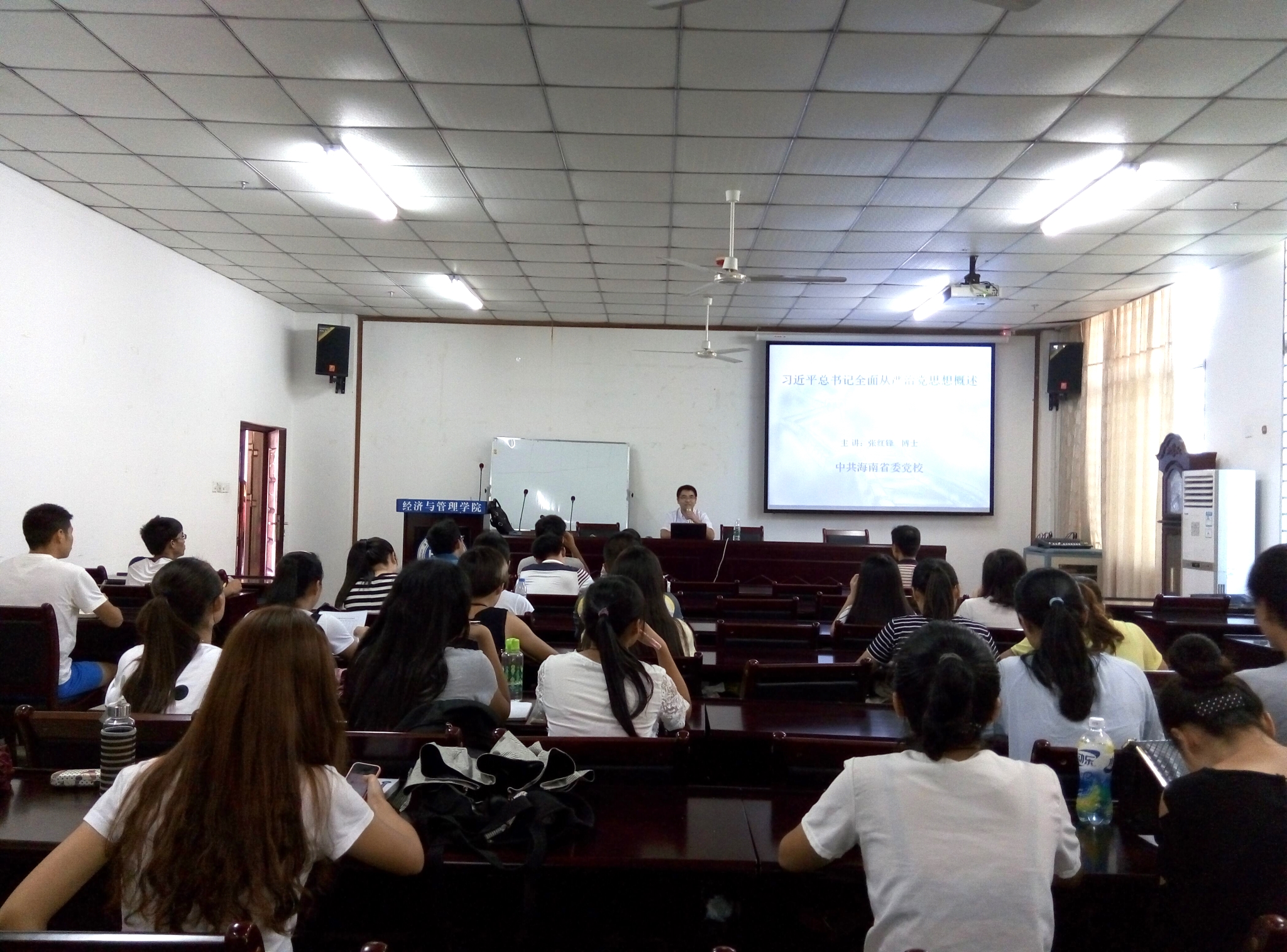 特邀中共海南省委党校老师张红锋博士在社科楼会议室B112为学生党员干部作“习近平总书记全面从严治党思想概述”的主题报告。来自经济与管理学院学生党建工作领导小组综合办公室的全体成员以及各支委委员40余人聆听了精彩报告,会议由365bet官网