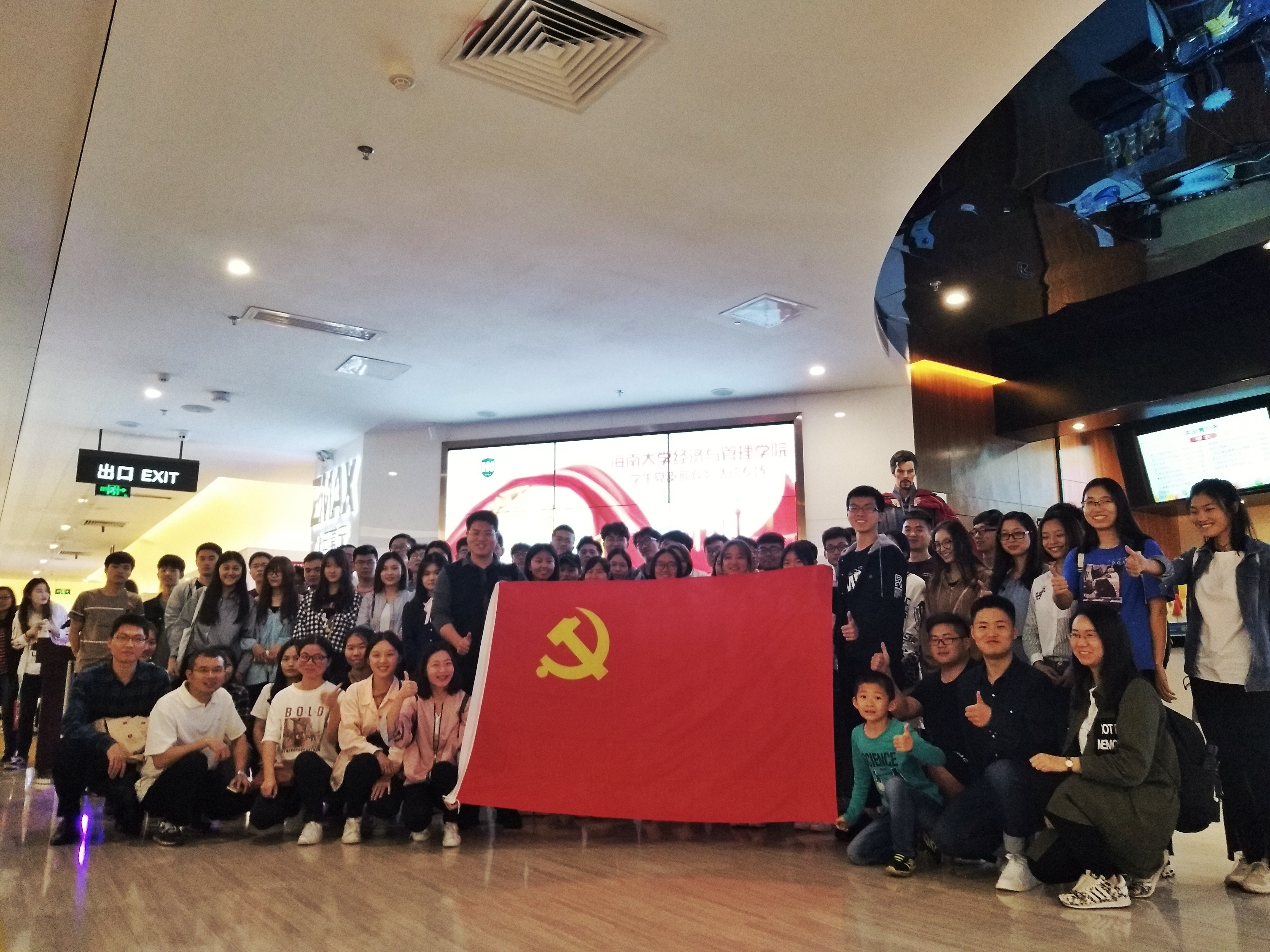 为深入学习贯彻落实党的十九大精神,进一步弘扬爱国主义精神,加深学院学生党员对党的十八大以来取得历史性辉煌成就的认识,增强学生党员的历史使命感和民族自豪感。3月24日晚6点30分,经济与管理学院学生党支部组织专场观影活动,集中观看学习了纪录影片《厉害了,我的国》。学院党委副书记周邦华、党委委员吴新、辅导员刘筱笛一同参加活动。