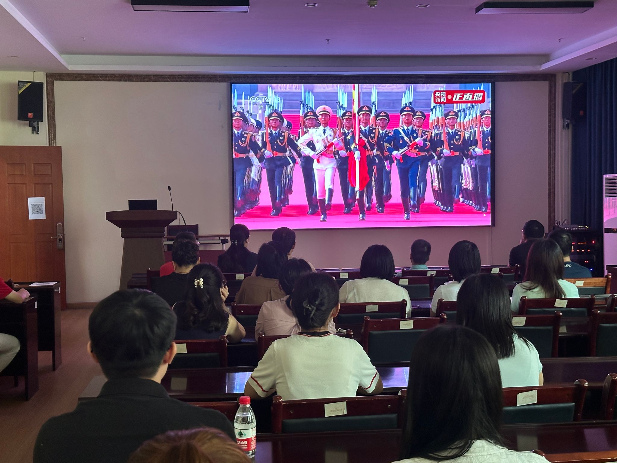 9月3日上午,纪念中国人民抗日战争暨世界反法西斯战争胜利80周年大会在北京天安门广场隆重举行。365bet官网 在社科楼B112设立分会场,实时同步直播大典盛况。学院教职工齐聚一堂,凝神观礼,致敬英雄先辈,汲取磅礴精神力量。历史昭示未来,使命呼唤担当。此次集体观礼既是一次深刻的爱国主义教育,亦是凝聚共识、激发奋进斗志的重要契机。