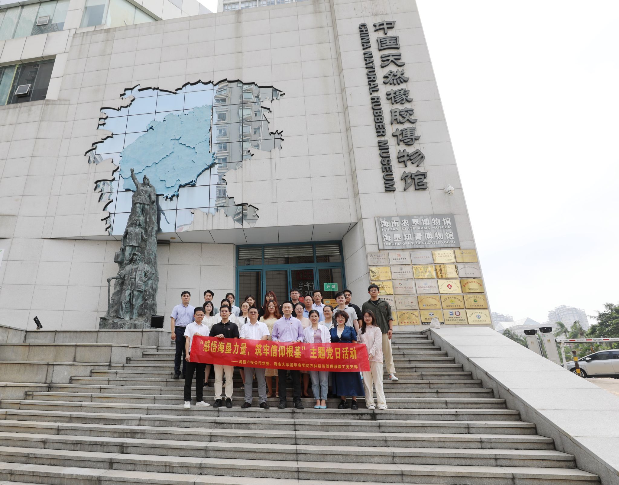 海南农垦博物馆是国家三级博物馆,于2011年2月建成,展厅面积4800平方米,设有序厅、丰碑颂、军垦志、赤子心、知青情、海垦魂、改革潮、关怀篇八大展厅及一个互动教育区,馆藏品两万余件。博物馆真实地记录了半个多世纪以来,以中国人民解放军官兵、复转军人、归国华侨、知识青年、社会民工、科技人员为主要代表的创业群体艰苦奋斗、勇于开拓的历史。支部全体党员通过参观学习,不仅惊叹于在北纬18°以北大面积成功种植天然橡胶、建成中国最大的天然橡胶生产基地的奇迹,也充分领略了艰苦奋斗,勇于开拓的农垦精神。