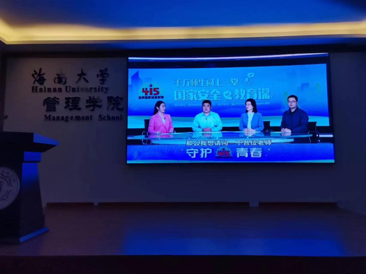 2022年4月15日晚,海南大学管理学院党委于社科楼B112组织观看《千万师生同上一堂国家安全教育课》,各支部党员到场参加。