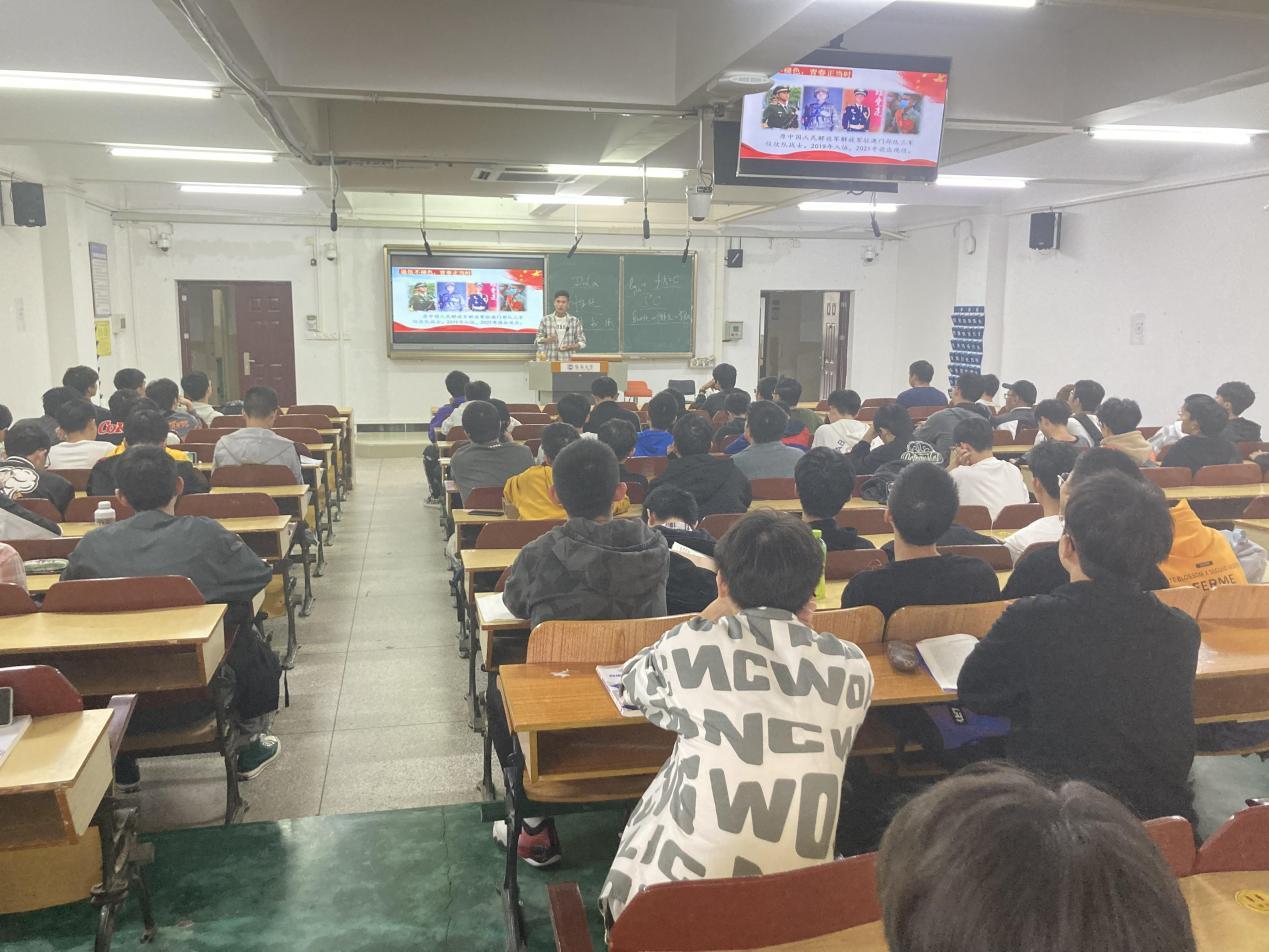 辅导员吴一峰老师、优秀退伍大学生代表李傲同学进行宣讲。