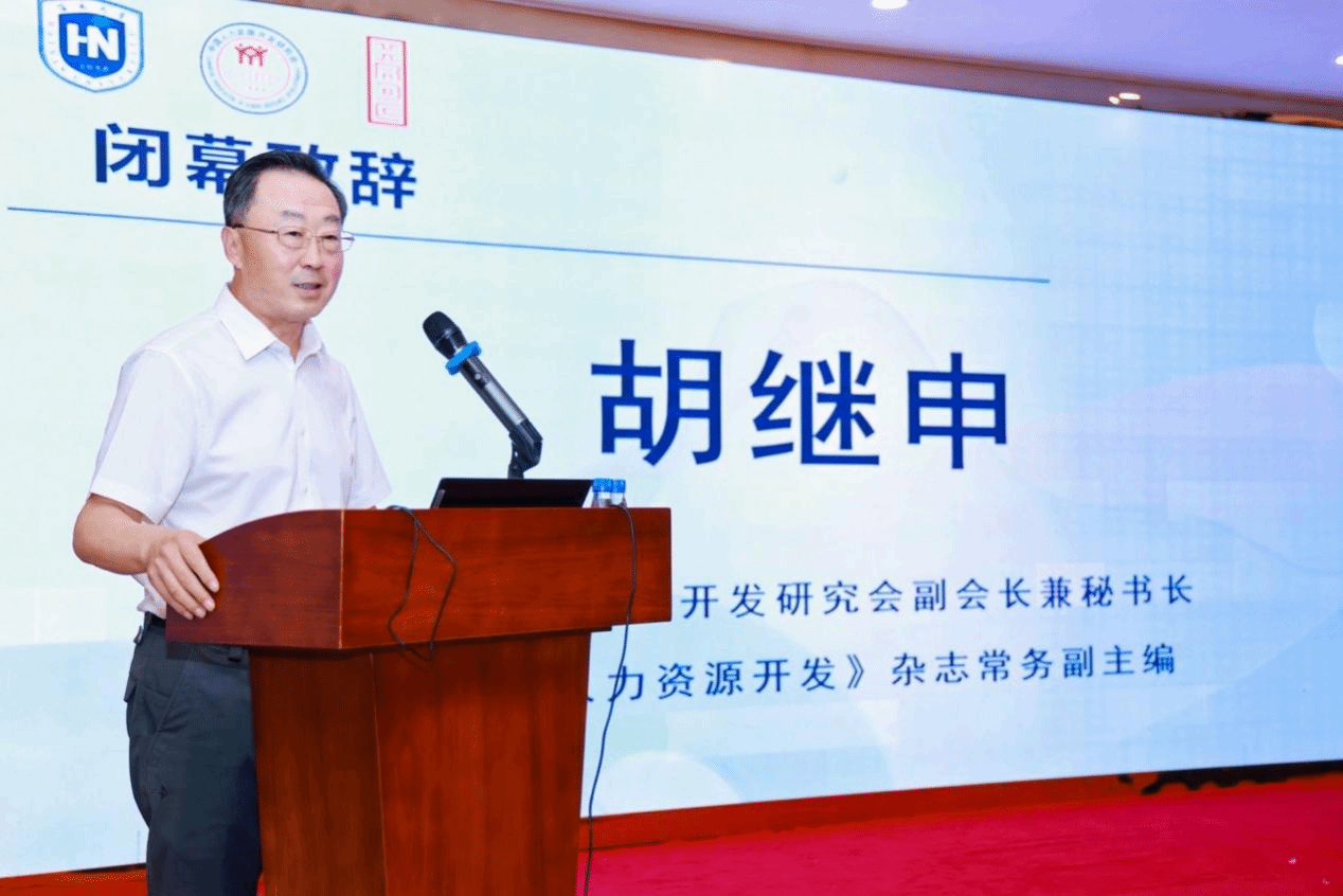颁奖仪式结束后,中国人力资源开发研究会副会长兼秘书长、《中国人力资源开发》杂志常务副主编胡继申进行闭幕式致辞并作会议总结。他高度评价了本次年会,认为体现出参与广泛、交流深入、守正创新的特点,学术年会不仅拓展了参与者的视野,而且加深了相互间的理解和不同学术观点的交流。他指出,未来应进一步更新和凝练人力资源开发的研究方向,积极推广优秀论文,共同提升杂志质量。最后,他向《中国人力资源开发》杂志社、承办单位bet365亚洲官网