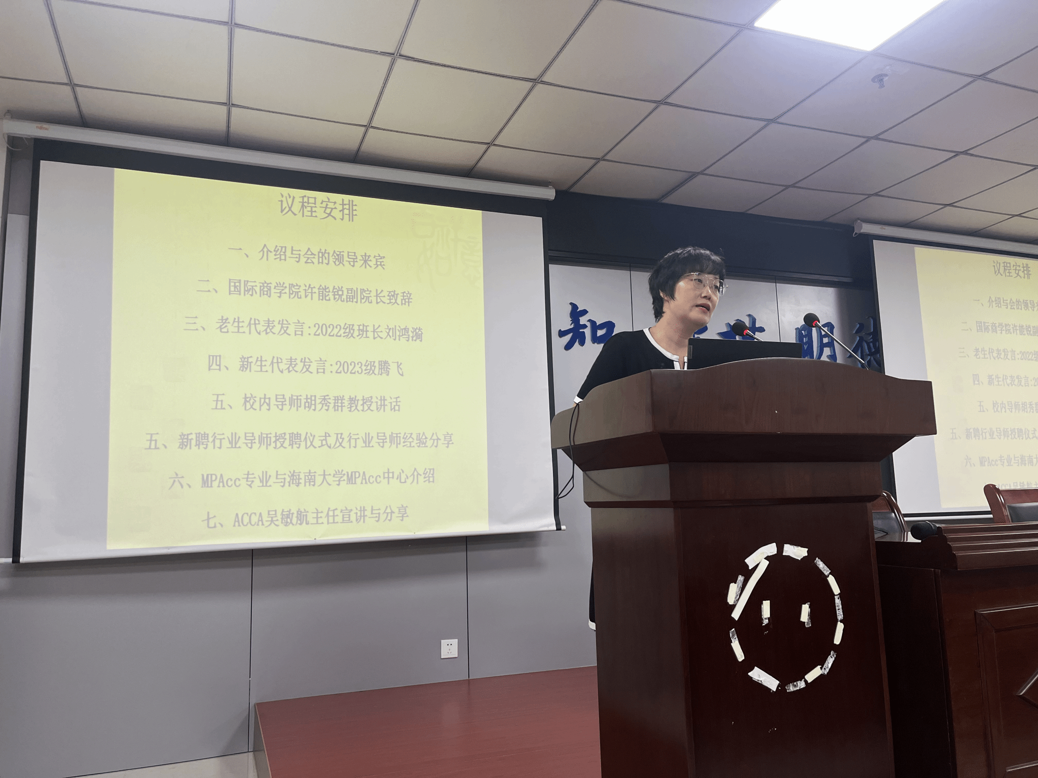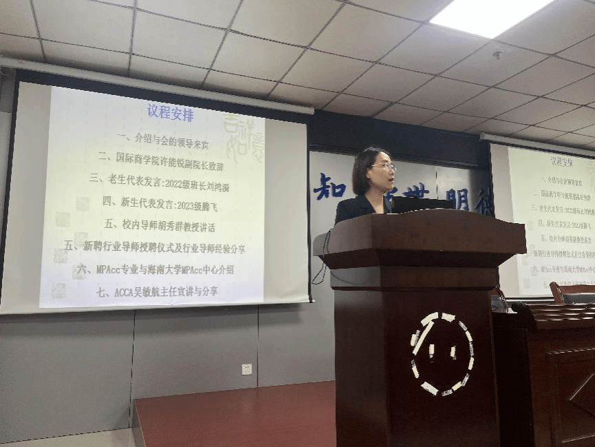 随后,胡秀群老师对2023级新生提出寄语“希望同学们能够保持对于学习的热爱”,并鼓励同学们积极为海南自贸港的发展贡献青春智慧、青春活力和青春力量。