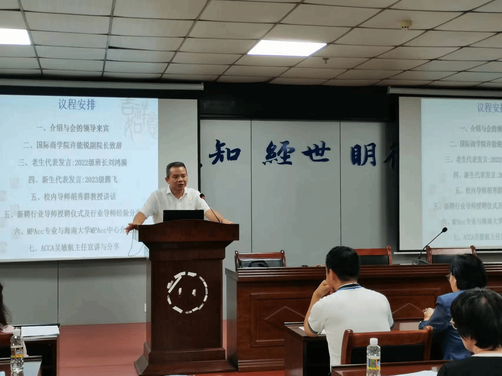行业导师代表秦浩、马东艳、毛昌成、柯泽丰、王书红、李慧、文翰依次发言,为2023级会计硕士新生分享学习经验及实践经验,并送上祝福与寄语。