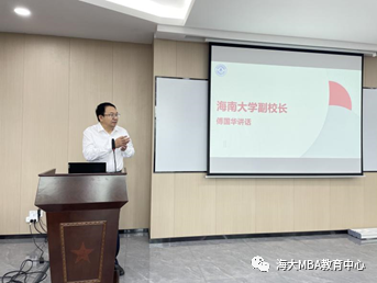 邢谷川书记向学员介绍了海南大学管理学院的发展成绩和发展规划,阐述了办学理念,以及学院对高管培训工作的支持,祝愿大家学有所成。
