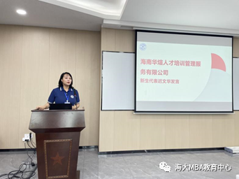 迟文华经理代表学员发言,表达了在海南大学认真学习、积极实践的态度,介绍了班级建设计划。