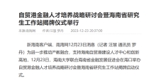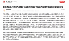 2023年12月23日下午,海南大学联合海南省金融发展促进会在海口共同举办“自贸港金融人才培养战略研讨会暨海南省研究生工作站揭牌启动仪式”。为更好地对标海南自贸港建设要求,海南大学金融学科积极谋划推动产学研合作,高起点培养自贸港金融人才。会议围绕海南省人才建设与海南研究生工作站未来的发展计划、风险管理师职业教育的重要性、风险管理师人才的培养等议题展开讨论,与会人员一起探讨了海南自贸港人才队伍建设与发展的新路径,共同为自贸港建设贡献人才力量。