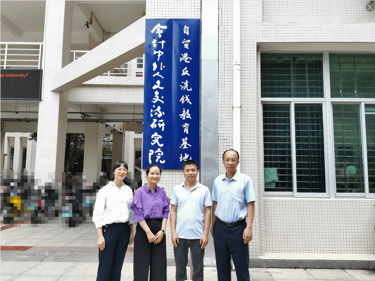 、会计中外人文交流研究院)开展反洗钱工作交流。基地负责人许能锐教授对钟教俐一行的到来表示热烈欢迎。