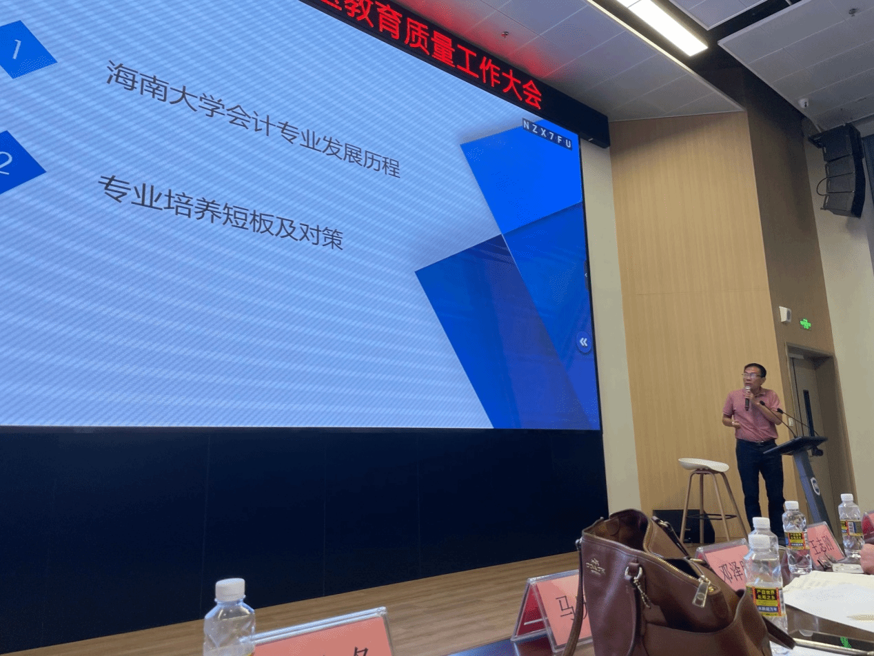 吴锡皓教授在报告中详细介绍了海南大学会计专业的发展历程和取得的成就。他指出,海南大学会计专业在中国软科排名中已跃升至全国第38位,这是对专业教育质量的高度认可。他强调,会计专业近年来在国际化发展方面取得了显著进步,不断提升教育水平,以适应全球化的经济环境。